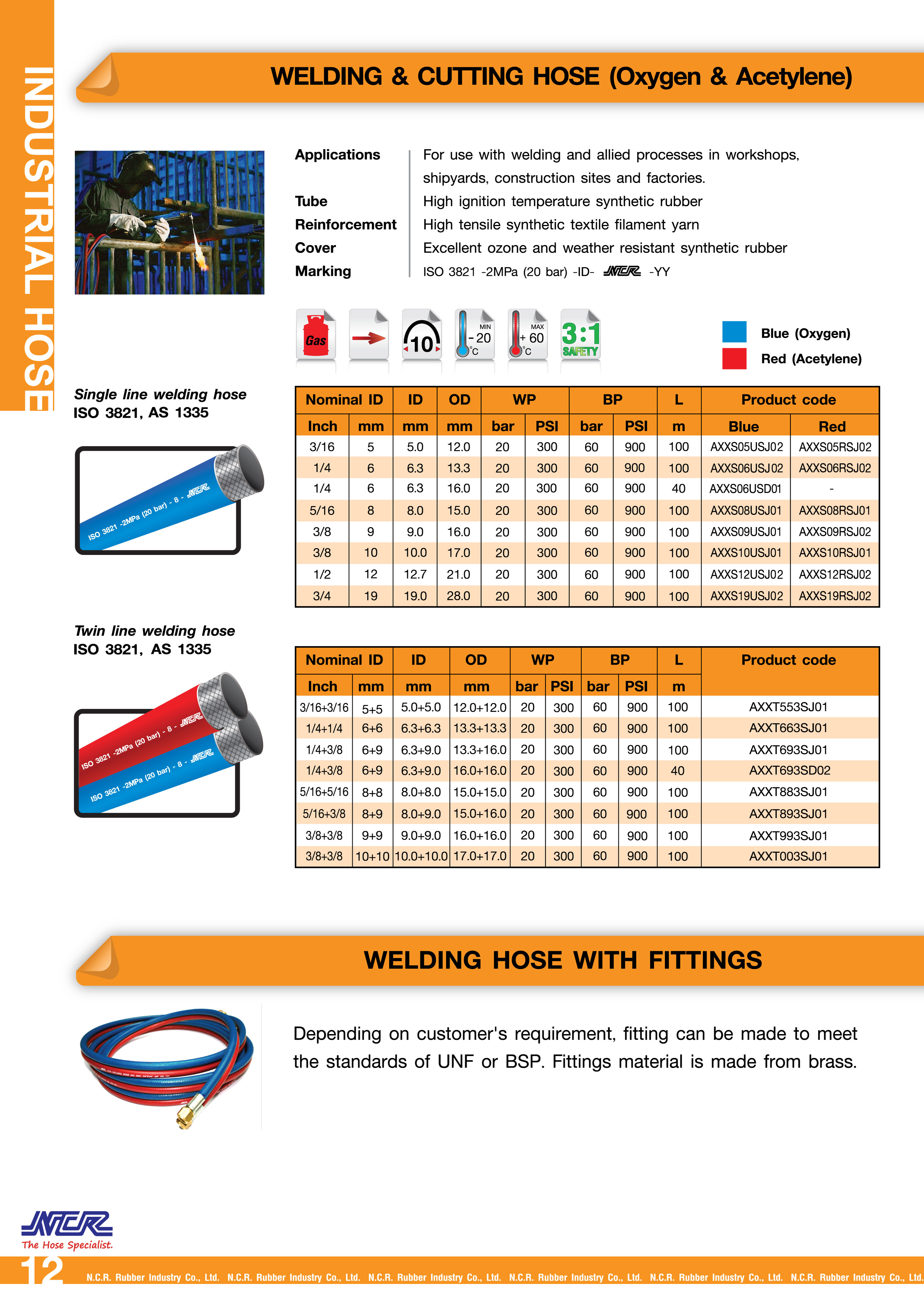 การใช้งาน : ใช้เป็นท่อส่งออกซิเจน ไนโตรเจน อาร์กอน CO2 โดยติดตั้งเข้ากับเครื่องมือตัดเหล็ก เครื่องมืองานเชื่อมโลหะ ตามศูนย์ซ่อม/บริการ ร้านตัดเหล็ก ร้านเชื่อม/อ๊อก อู่ต่อเรือ งานก่อสร้าง โรงงานอุตสาหกรรม หรือหน่วยงานโครงการต่างๆ